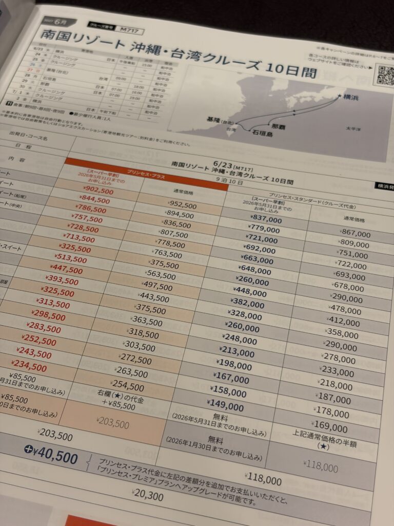 出向時期やお部屋の内容によっては、思ったよりリーズナブルなクルーズも楽しめます。